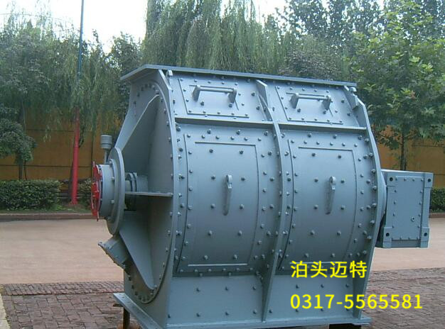 3、叶轮给料机的结构包括一个回转叶轮,固定的壳体和驱动装置等,叶轮叶片上大都焊有抗磨板,提高了叶轮的使用寿命;入料口中心距和壳体中心线有一定的偏差,是为了适用于颗粒较大的物料的进入。壳体内衬大都装有抗磨层;叶轮是由两端轴承支承,可以保证叶轮和壳体之间的间隙均匀;由于入料温度较高,叶轮与壳体之间留有相应的间隙。两端密封是用石棉盘根密封、方式简单、密封性好,容易操作及换。