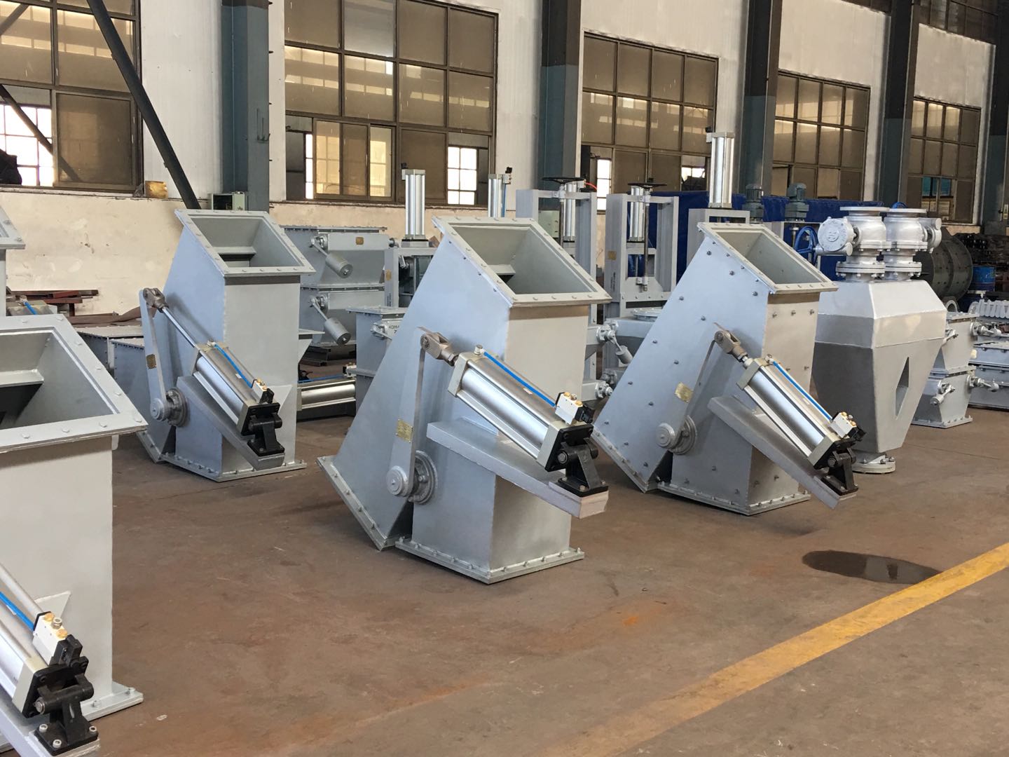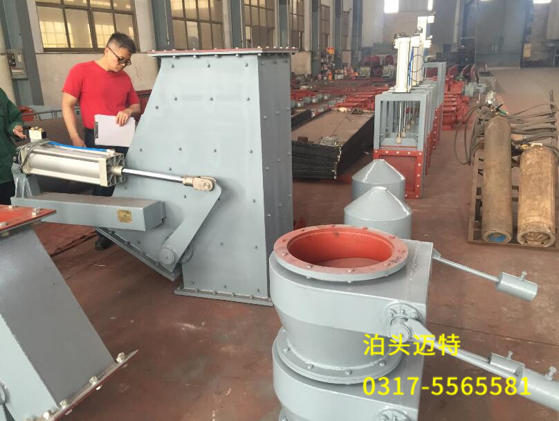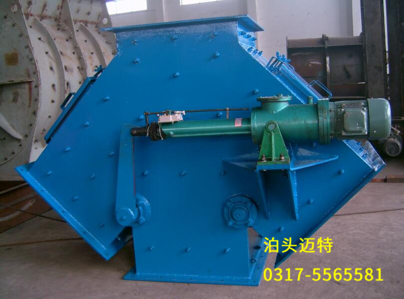该阀采用钢板焊接结构、具有体积小、重量轻、阻力小。采用电动推杆(电液动、气动推杆)驱动,可以快速切换物料流向。