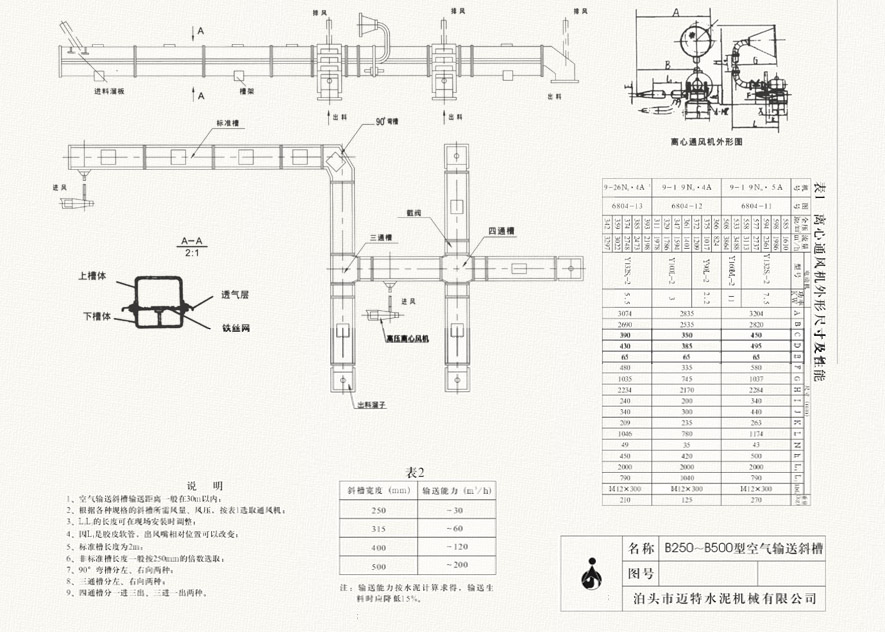 斜槽主要构件是透气层,本系列设计中采用的柔性厚型板式合成纤维织物,是一种新型透气层,它具有耐高温(可达150℃)耐腐蚀,耐磨损,吸湿性低,重量轻,表面平整,使用寿命长等优点。透气层无需现场安装,每节槽体由制造厂组装后,现场对接起来即可,这样既减少了安装工作量,又保证了质量。