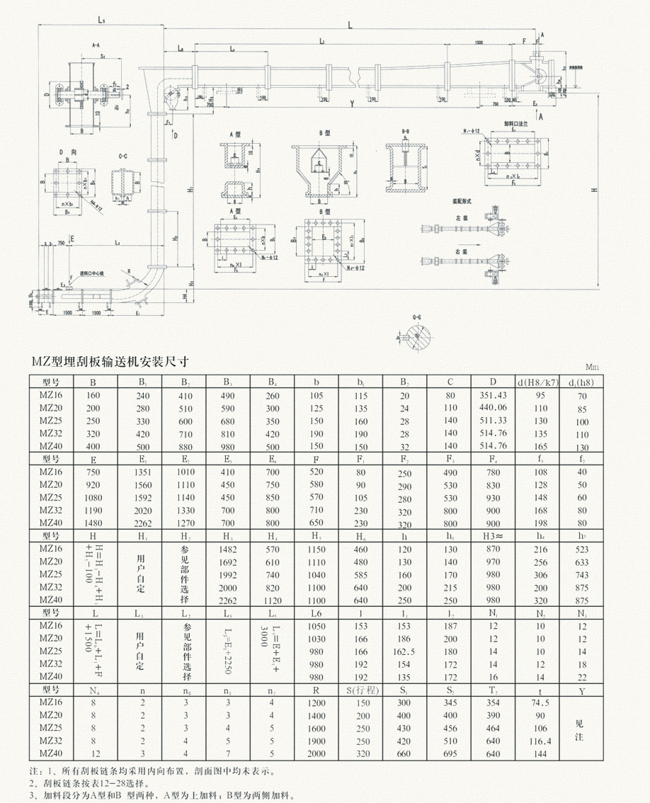 埋刮板输送机主要由封闭断面的壳体(机槽)、刮板链条、驱动装置及张紧装置等部件组成。设备结构简单、体积小、密封性能好、安装维修比较方便;能多点加料、多点卸料,工艺选型及布置较为灵活;在输送飞扬性、有毒、高温、易燃易爆的物料时,可改善工作条件,减少环境污染。埋刮板输送机已被广泛应用于化工、建材、冶金、电力、粮食、轻工和交通等部门。