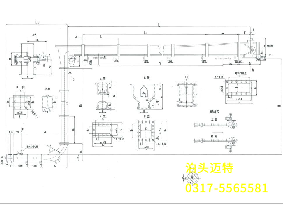 (2)物料温度:一般机型适用物料温度小于120℃;热料型输送物料的温度为100~450℃,瞬时物料温度允许达到800℃。