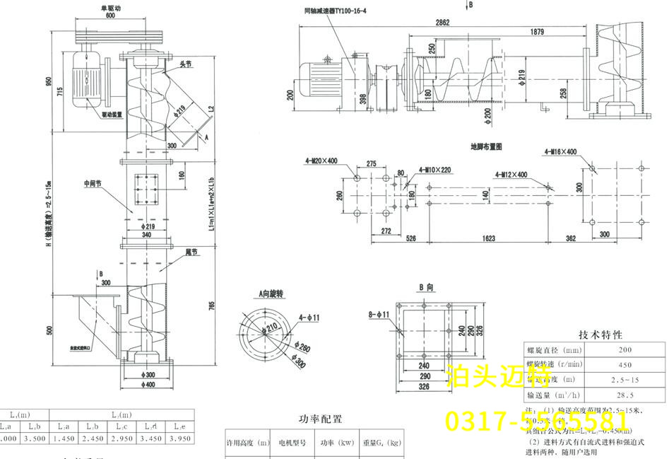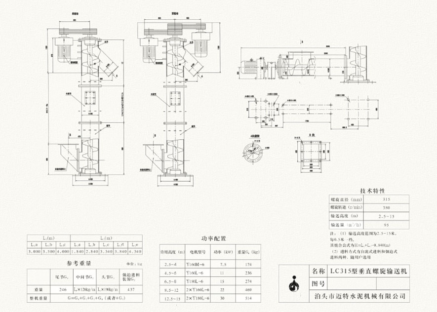 垂直螺旋输送机适宜垂直或较大倾角输送粉状、粒状、非粘性的、容重≤1.3t/m3的干燥物料,如粮食、油麸、饲料、化工原料、水泥等。物料温度一般不能超过80℃,垂直螺旋输送机不适宜输送块状及粘性的物料、也不宜输送容重甚小(0.5t/m3以下)流动性很强的如粉煤灰等物料。